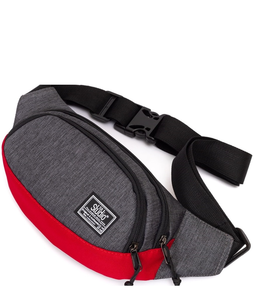 поясная сумка 901 т.серый джинс/красный
