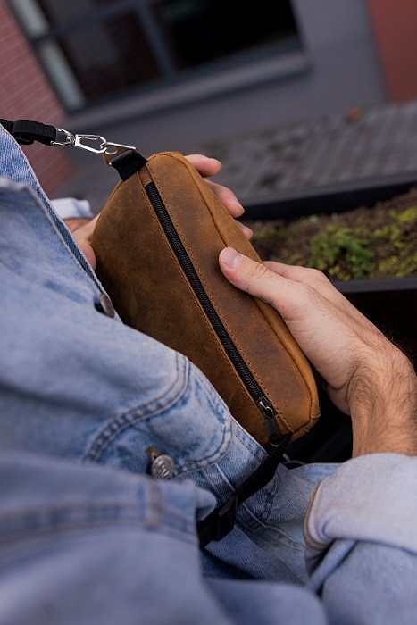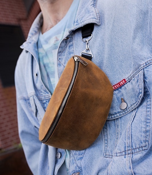 Эта поясная сумка является неотъемлемым аксессуаром для тех, кто ведет активный образ жизни, ведь позволяет держать всё самое необходимое при себе, оставляя свободу действий. Выполнена из специальным образом выделанной и обработанной натуральной кожи Crazy Horse (крейзи хорс), благодаря чему выглядит винтажно. Мягкая и приятная на ощупь, но в тоже время формоустойчивая. Металлическая молния с ярким никелевым покрытием прекрасно дополняет фактуру кожи. Благодаря регулируемому текстильному ремешку, может носится как на поясе, так и через плечо. Сумка отлично подходит как к осенне-зимним пальто и курткам, так и к летним образам. Карман на задней стороне поможет организовать пространство еще лучше. Не зря мировые дизайнеры вернули к жизни поясные сумки)
