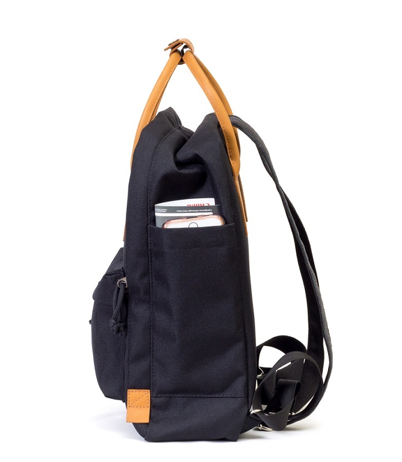 Рюкзак небольшого размера, легкий, но благодаря прямоугольной форме довольно вместительный, в который идеально помещаются папки или книжки размером А4. В кармане на молнии в основном отделении можно переносить планшет или маленький ноутбук. А два плотных кармана пригодятся для телефона и документов. Сбоку имеются карманы для воды и зонтика. Плечевые лямки очень удобные, не сваливаются с плеч и могут регулироваться почти под любой рост. Рюкзак сделан из прочной водонепроницаемой ткани с использованием молнии японской компании YKK, которая является мировым лидером в своей области. Ручки из натуральной кожи придают ему добротность, дополняя и без того необычный и интересный образ рюкзака. К тому же конструкция ручек дает возможность использовать рюкзак как сумку.