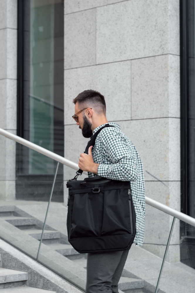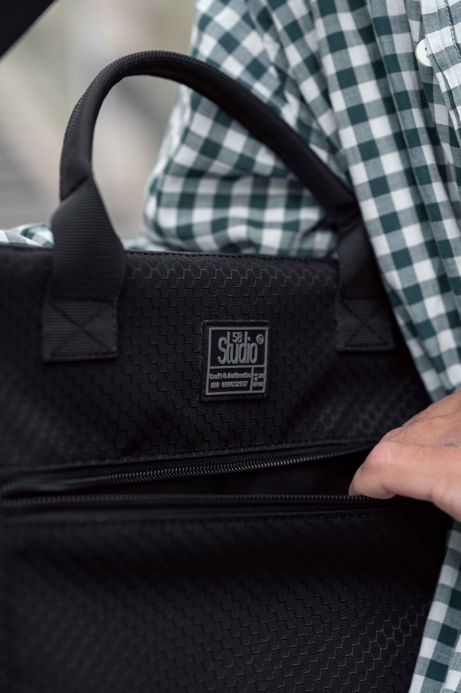 - объемные карманы на передней стенке сумки c водоотталкивающей молнией SBS (ширина 25см, высота 26см)