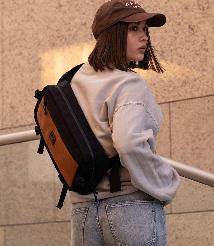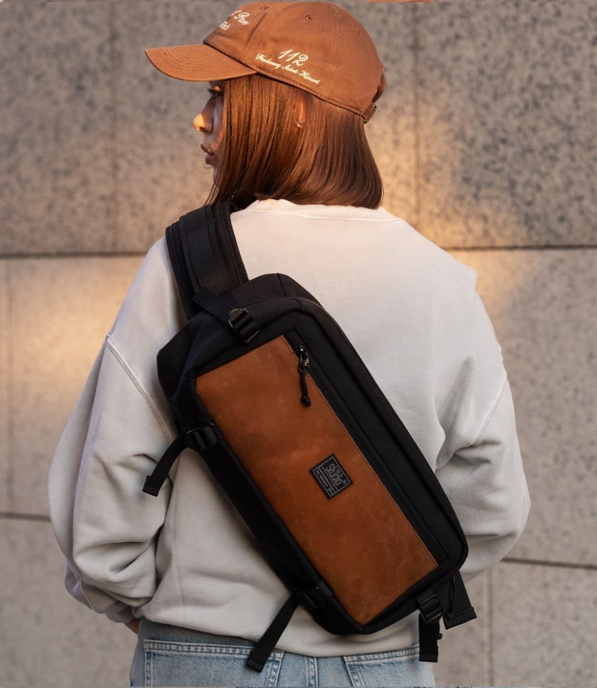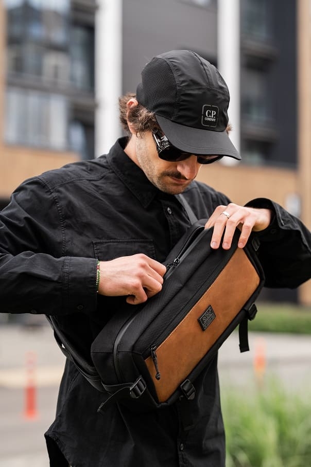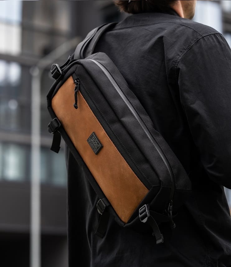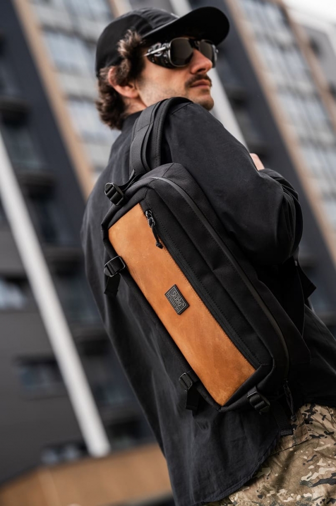 Сумка-слинг TRAFFIC черный/натуральная кожа рыжая